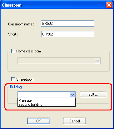 Paso 2. Para cada aula puede especificar en qué edificio está: