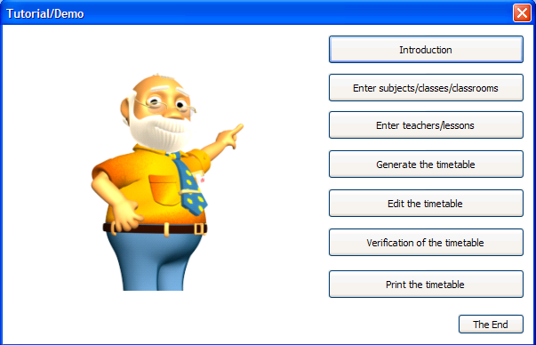 Después sólo lea los textos y pulse Enter para continuar el tutorial. Si una parte queda terminada, el program la enviará al diálogo tutorial y usted puede elegir otra parte.