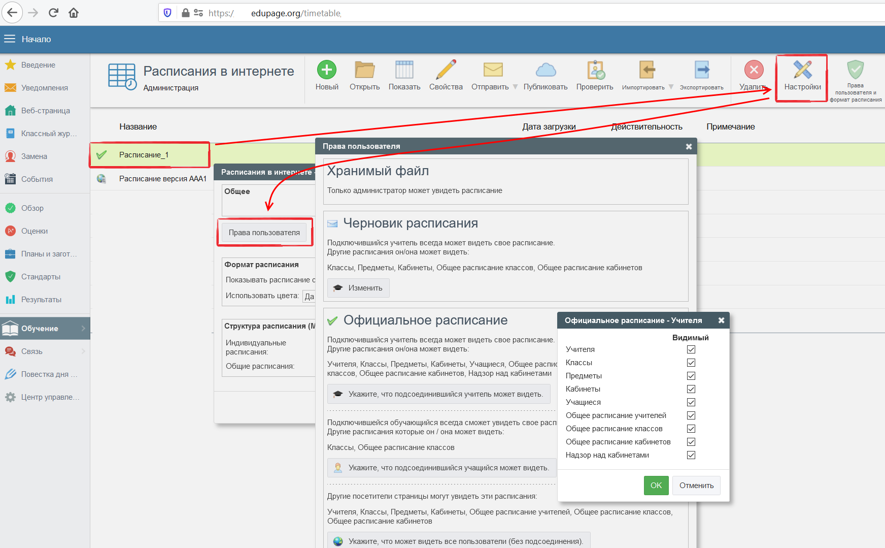 По умолчанию все посетители веб-страницы могут видеть только расписания классов.