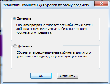 Так можно заменить или добавить кабинеты для уроков, которые уже введены в программу.