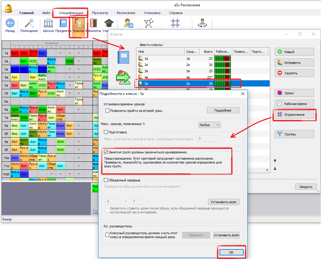 В этом случае Вы можете запретить создание такого расписания, отметив что "Занятия групп должны закончиться одновременно":