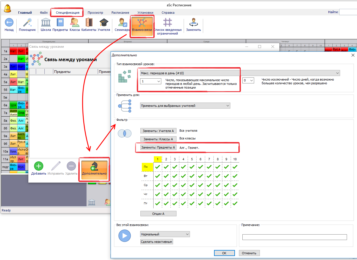 Однако тогда Вам придется создавать отдельную взаимосвязь для каждого учителя. "Применить для выбранных учителей" позволяет создавать только одну отдельную взаимосвязь, которое применяется к указанным учителям в отдельности.