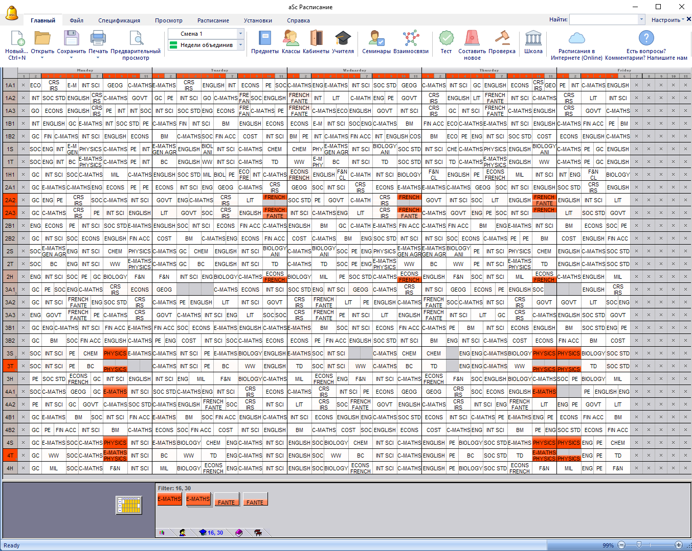Через минуту программа показала расписание в разных цветах: