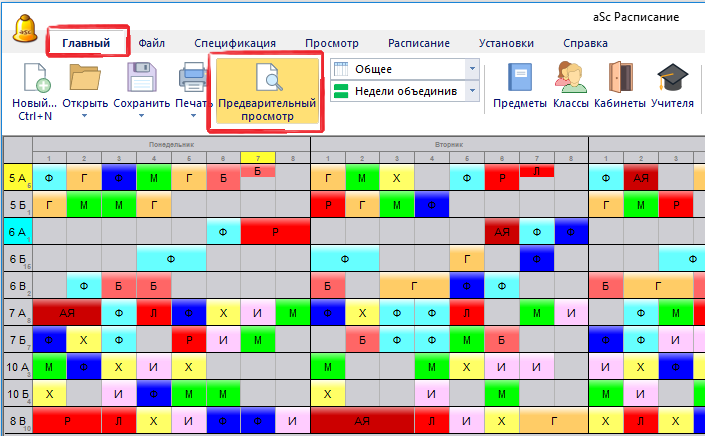 Примечание: Если Вы не используете функцию Семинаров, тогда в программе нет информации об учениках (их имен), а есть только информация о группах. В этом случае Вы можете напечатать только расписание для классов.