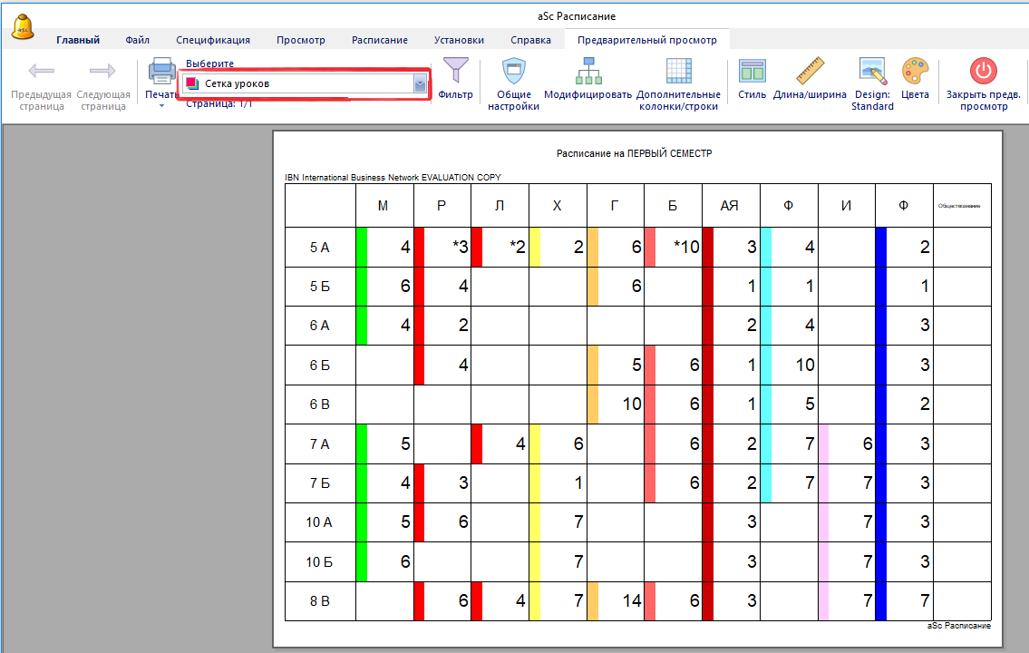 Как напечатать сетку уроков?