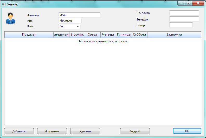 Можно добавить одного ученика, эта опция позволит сразу ввести также и предметы, которые он выбрал: