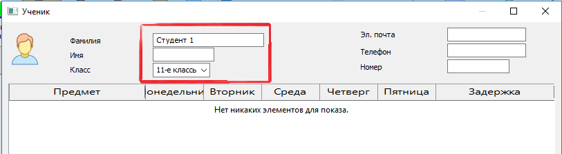 Как мы увидим позже, ввод выборов предметов может быть сделан также для большего количества учащихся сразу, так что может быть лучше сначала ввести только имена и класс.