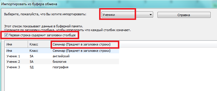 Импортировать выборы учеников (семинары) из буфера обмена (Excel) - Метод 1