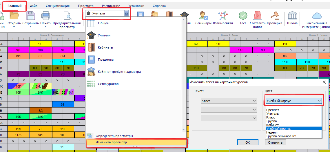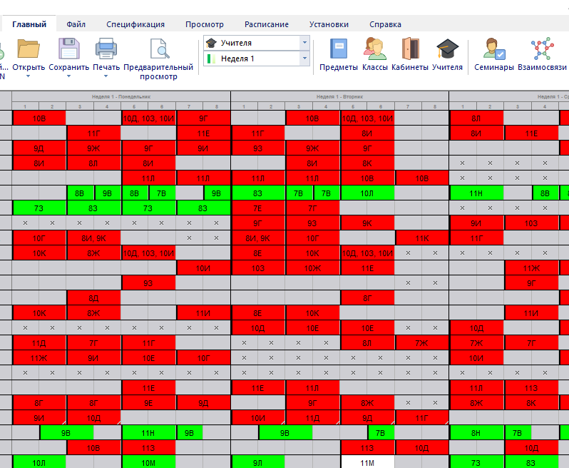 Примечание: белый урок на картинке выше - уроку не назначен кабинет; так можно и быстро найти такие уроки.