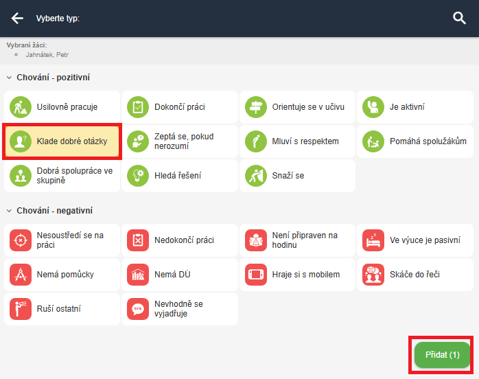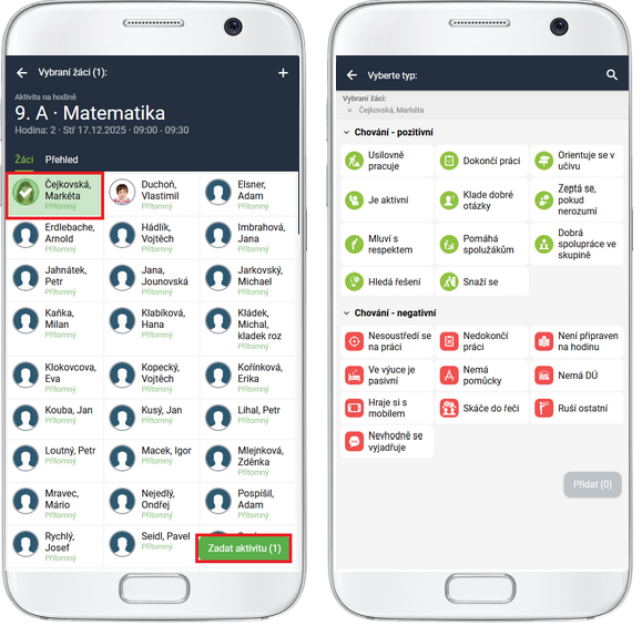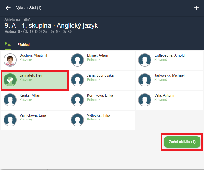 Zaškrtněte jednoho nebo více žáků, kterým chcete přiřadit stejnou aktivitu.
