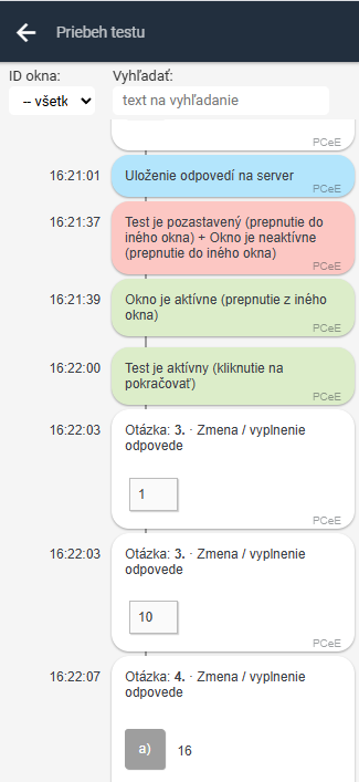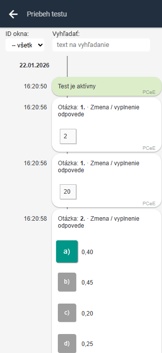 Informácie o priebehu testu u konkrétneho žiaka (mobilná aplikácia)