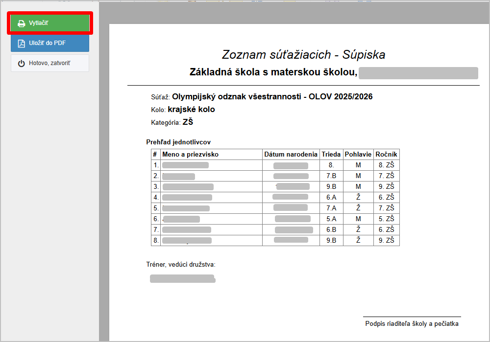 Ako vytlačím súpisku a prezenčku k športovej súťaži Olympijský odznak všestrannosti - OLOV ?