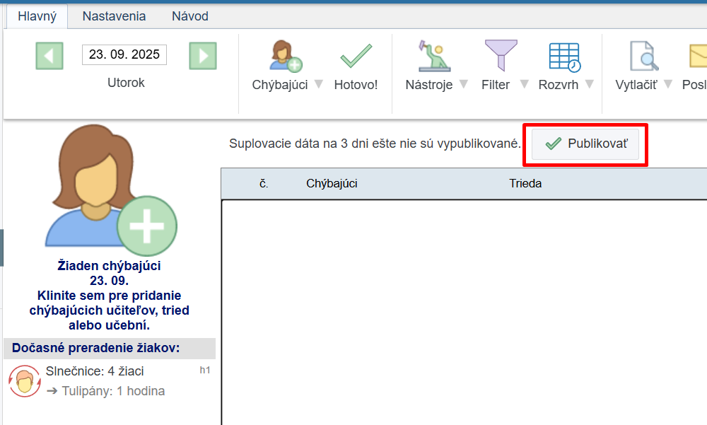 Suplovacie dáta zverejníme kliknutím na Publikovať .
