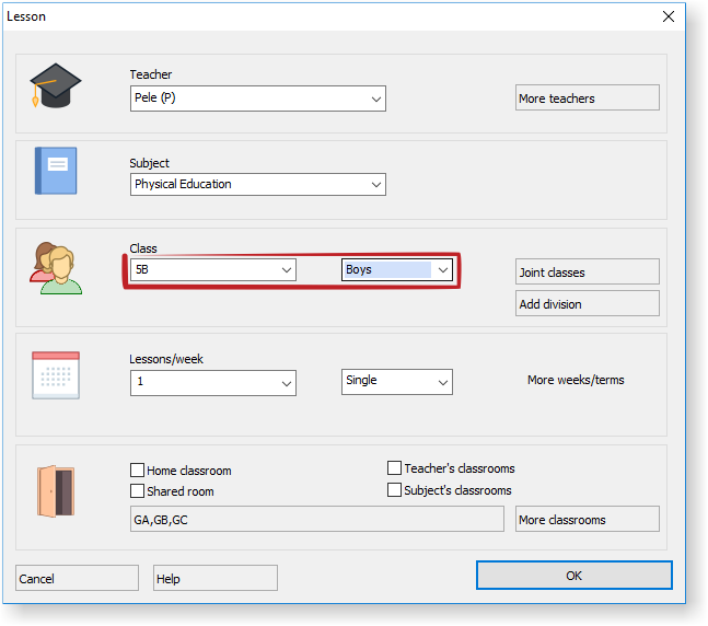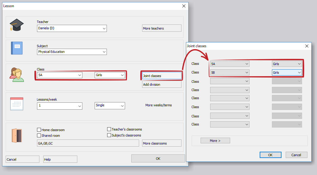 V prípade, že máte v dvoch triedach viacej chlapcov, môžete vytvoriť hodiny osobitne pre skupiny chlapcov z oboch tried a jednu hodinu, kde budú spojené obe skupiny dievčat.
