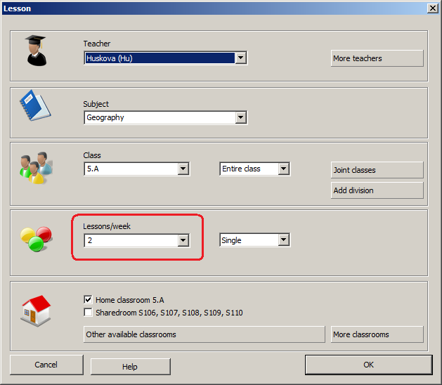 Čiže, ak do tohto políčka napíšete číslo 5, program vytvorí 5 hodín za týždeň, ktoré môžu byť umiestnené káždý deň na inej vyučovacej hodine.