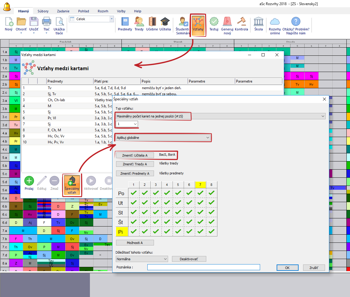 Avšak, ak potrebujete aby dvaja učitelia neučili naraz z nejakého iného dôvodu (napr. obaja používajú jeden projektor), môžete definovať tento rozšírený vzťah: