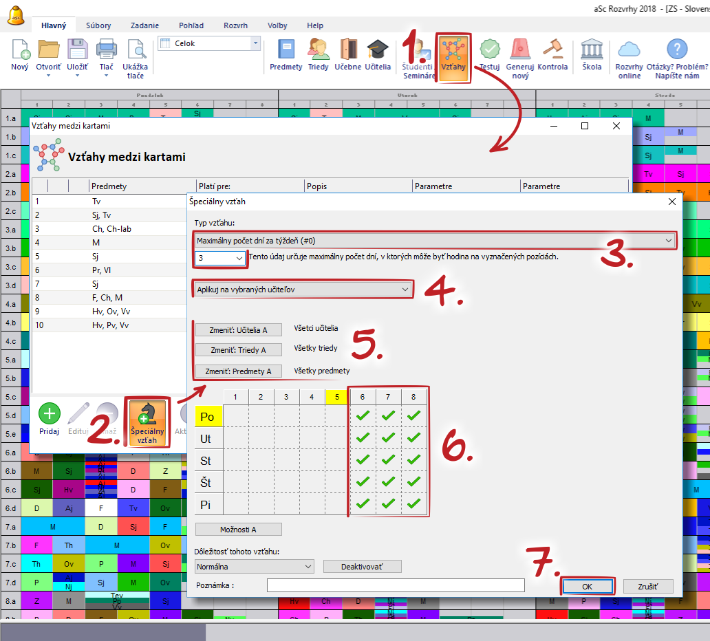 V podstate sa vo vzťahu hovorí, že učiteľ smie učiť maximálne 3 dni na vyznačených poziciách. Uistite sa preto, že ste ich vyznačili správne.