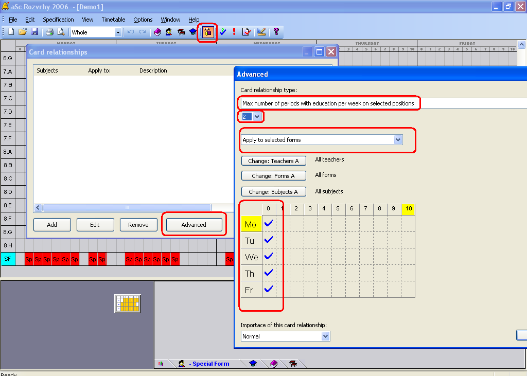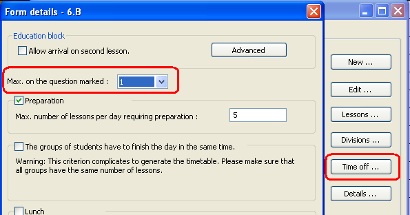 Potom zadajte, že trieda má mať maximálne jednu hodinu na otáznikovej pozícii. To je možné zadať cez detaily Triedy: