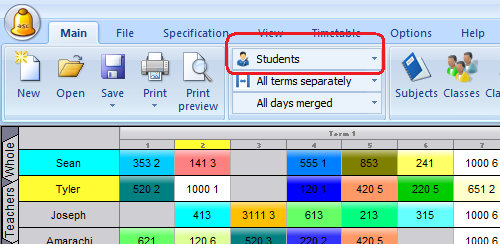 So this view is usufull for some final tuning. If you by accident remove his from the groups, you will find the cards in the bottom are that shows cards not placed in the timetable. In this view this actually means the students picks that are currently unrealized.