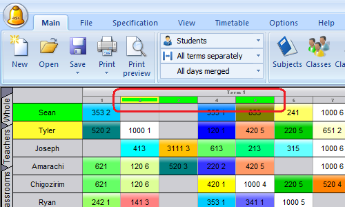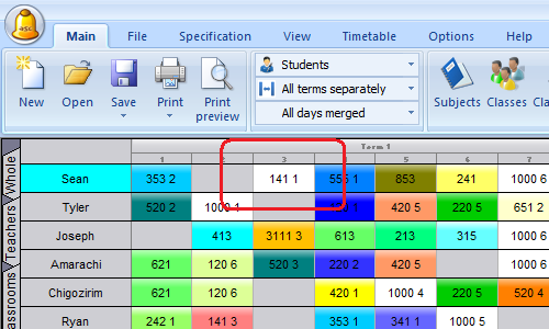 We place it to 3rd period. You see on the card he was just transferred into section1. The color has also changed because the color was by teachers. (You can change this color coding)