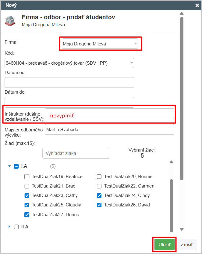 5. Vyberte konkrétnych žiakov.