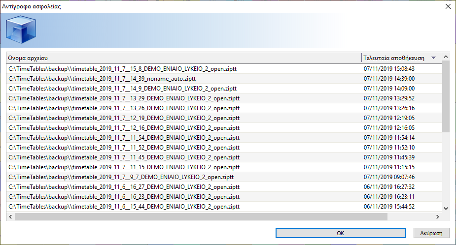 Σε περίπτωση που χάσετε το αρχείο σας, καταστραφεί ή το αντικαταστήσετε κατά λάθος, μπορείτε να χρησιμοποιήσετε το τοπικό αντίγραφο του αρχείου από την επιλογή στο μενού Γενικά/Άνοιγμα/Άνοιγμα από τοπικό αντίγραφο.