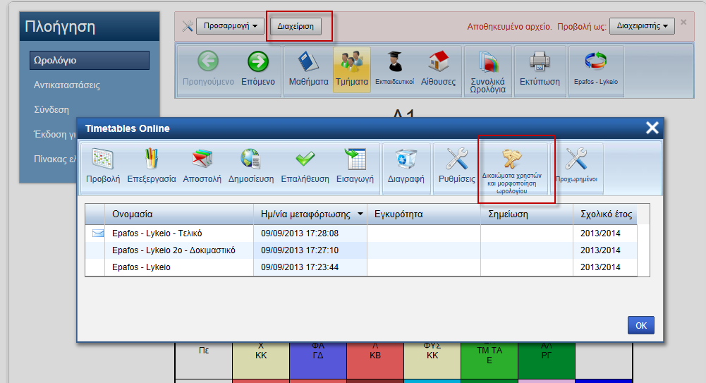 Για κάθε κατάσταση μπορείτε να τροποποιήσετε τις προεπιλεγμένες ρυθμίσεις μέσα από την επιλογή "Δικαιώματα χρηστών και μορφοποίηση ωρολογίου", μέσα από το μενού της "Διαχείρισης":