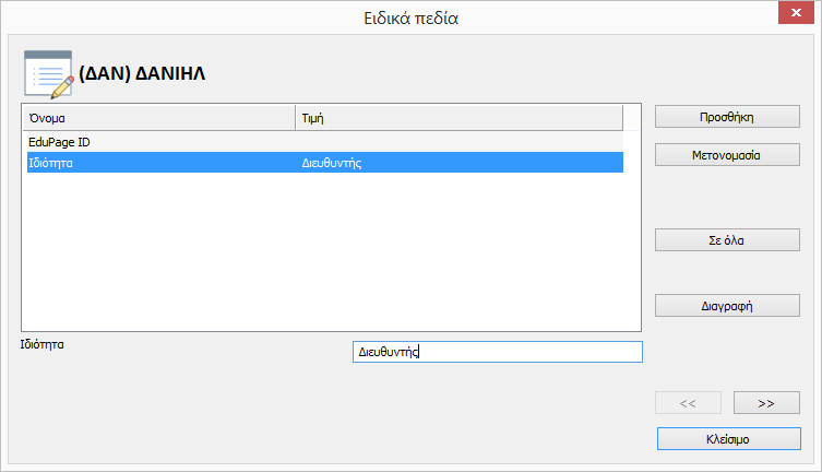 Για παράδειγμα εάν χρειαστείτε να εισάγετε και να εκτυπώσετε την ιδιότητα του εκπαιδευτικού, μπορείτε να κατευθυνθείτε στα Ειδικά πεδία του.