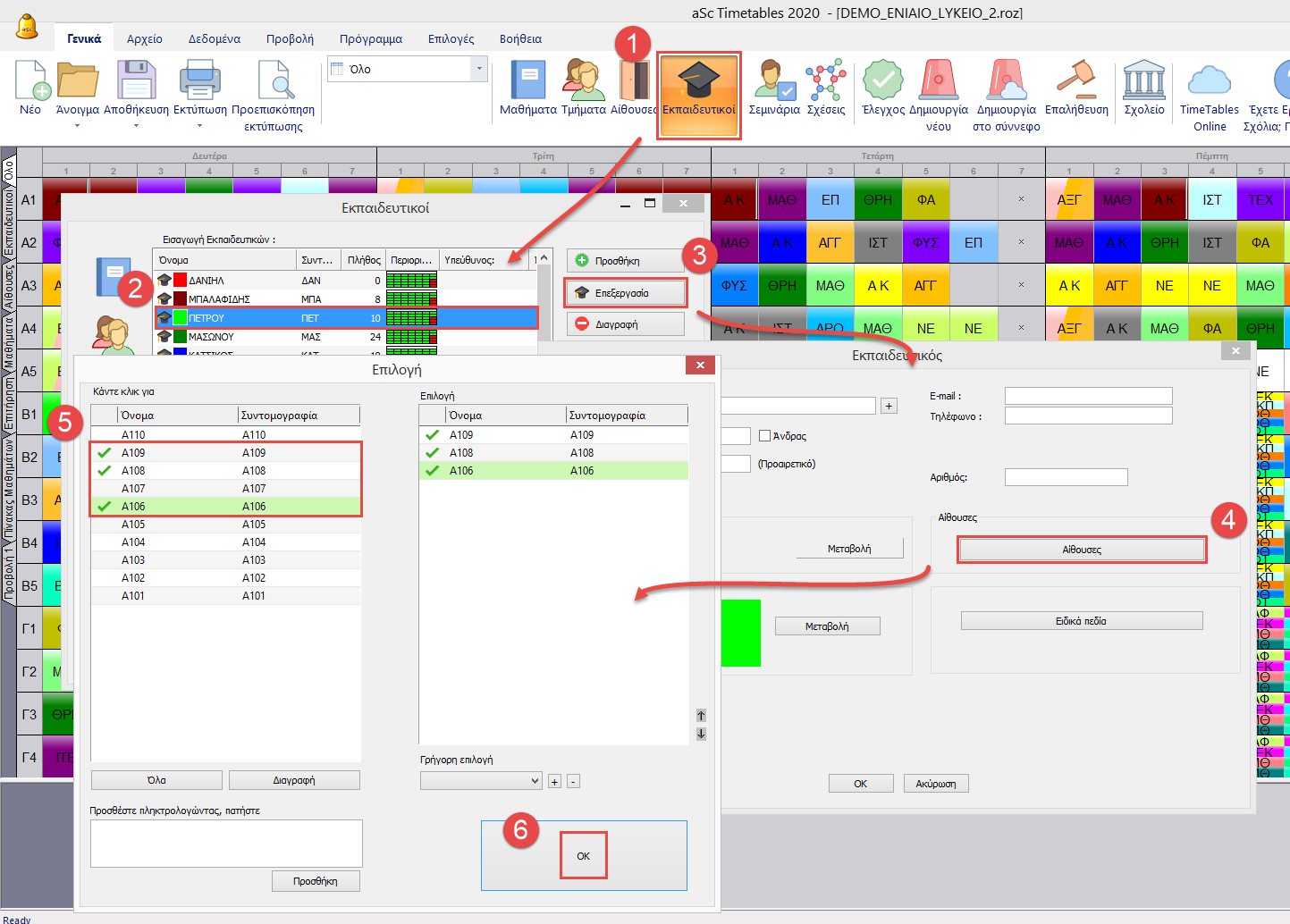 Μπορείτε να επεξεργαστείτε όλους τους εκπαιδευτικούς και να ορίσετε τις αίθουσές τους.