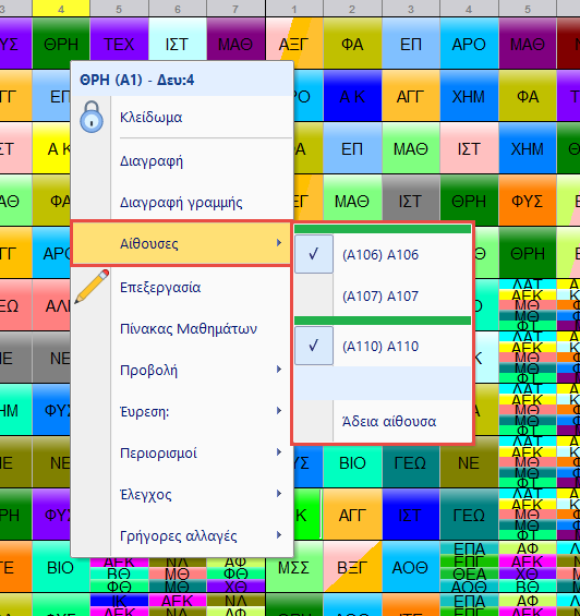 Όταν επεξεργάζεστε το ωρολόγιο πρόγραμμα μπορείτε χειροκίνητα να αλλάξετε αυτή την επιλογή κάνοντας δεξί-κλικ στην κάρτα.