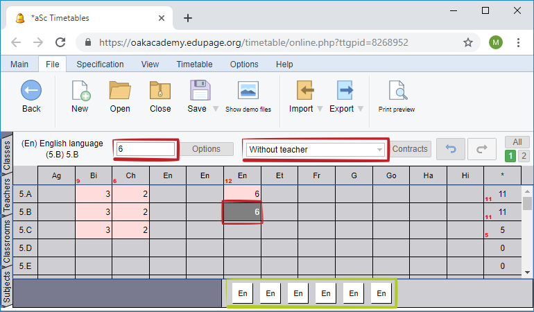 Οι διδασκαλίες που εμφανίζονται με ροζ χρώμα υποδεικνύουν ότι δεν έχει οριστεί ακόμα εκπαιδευτικός.