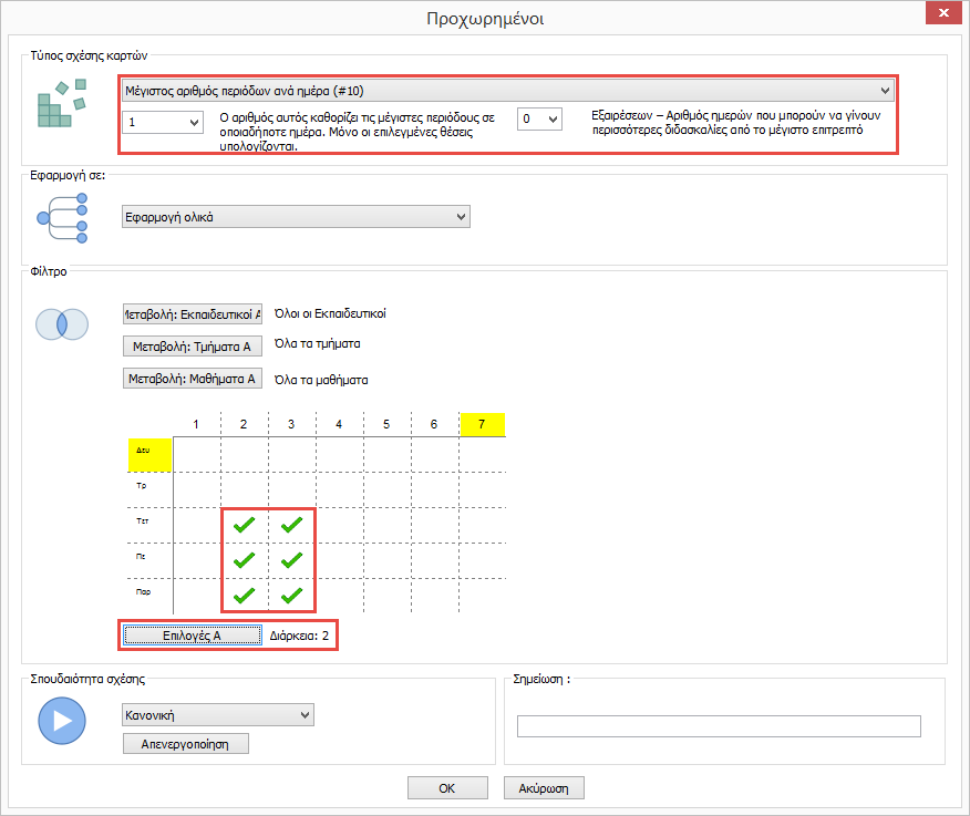 - Με το κουμπί επιλογές μπορείτε να πείτε ότι οι σχέση θα αφορά μόνο διπλές διδασκαλίες.