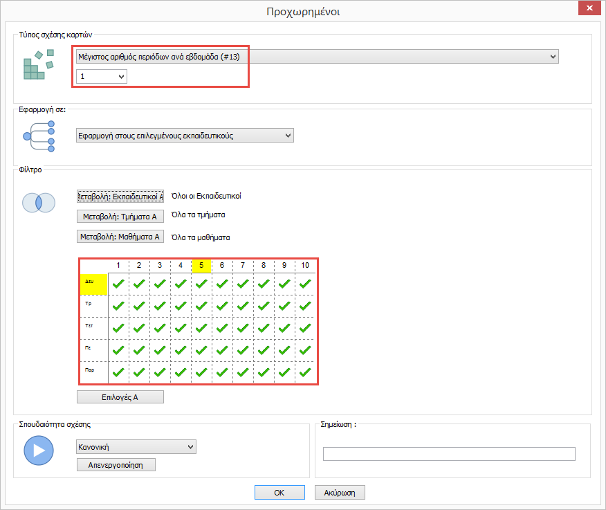 Τι σημαίνει η λειτουργία "Εφαρμογή σε" στις σχέσεις καρτών;