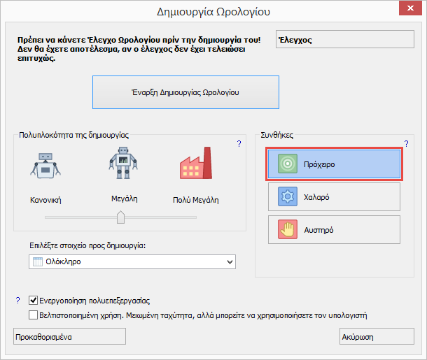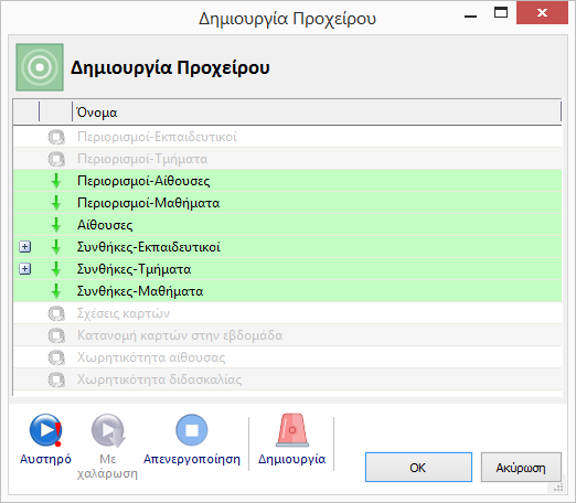 Ύστερα κάντε κλικ στην “Δημιουργία” και θα δημιουργηθεί ωρολόγιο μόνο με τους ενεργοποιημένους περιορισμούς.
