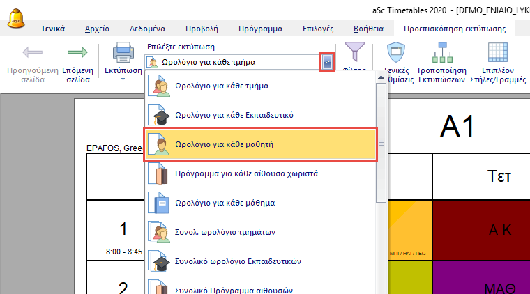 Πως μπορώ να εκτυπώσω πρόγραμμα για ξεχωριστά για κάθε μαθητή