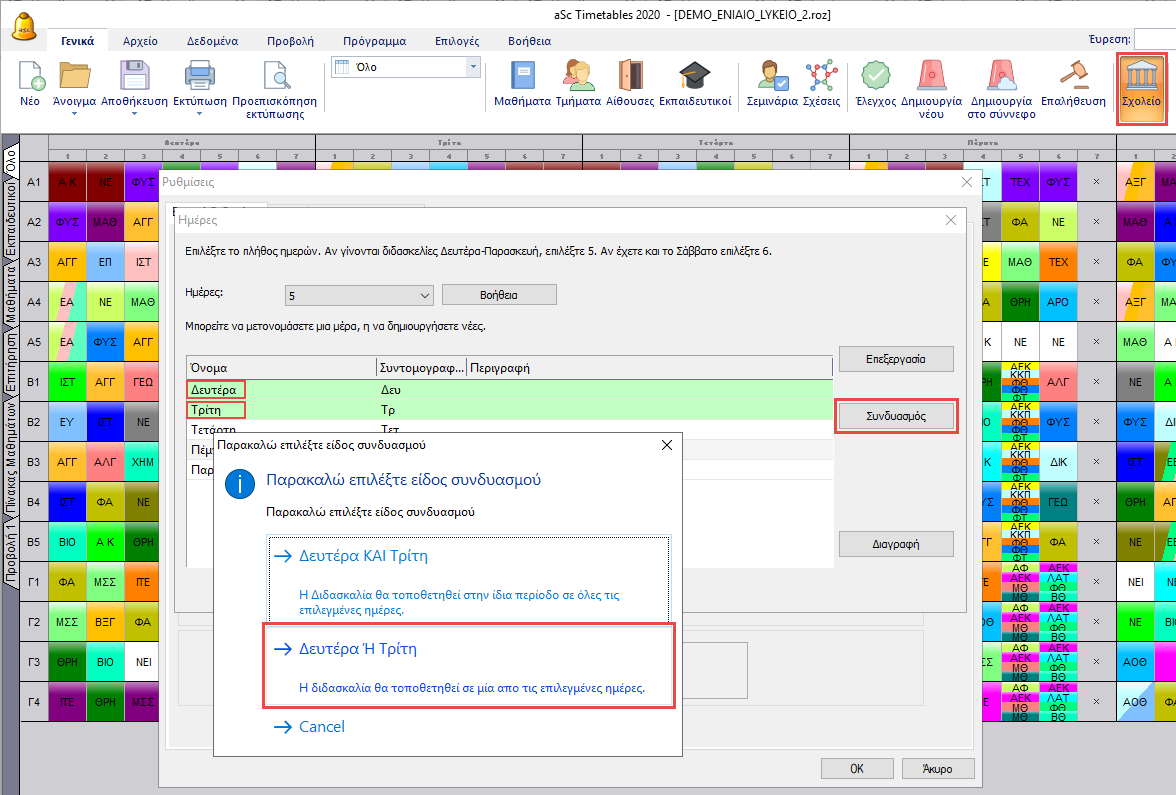 Πρέπει κατευθυνθείτε στο παράθυρο ορισμού των ημερών και να εισάγετε μία νέα επιλογή Δευτέρα Ή Τρίτη.