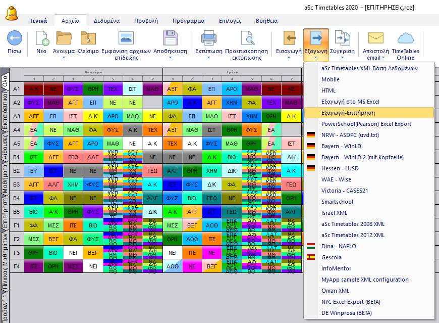 Πως θα εκτυπώσω τις επιτηρήσεις στο πρόγραμμα του εκπαιδευτικού ή της αίθουσας στο ωρολόγιο;