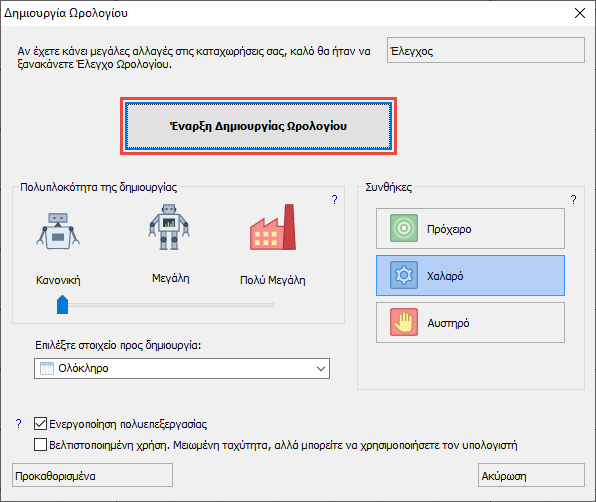2.Η δημιουργία του συνολικού ωρολογίου προγράμματος - χωρίς μαθητές, θα τοποθετήσει μόνο τις διδασκαλίες των μαθημάτων στις ώρες που θα γίνουν, και προς το παρόν, δεν θα αναθέσει διδασκαλίες σε μαθητές. Έτσι, το αποτέλεσμα θα είναι η δημιουργία ενός κύριου ωρολογίου προγράμματος, χωρίς την ανάθεση διδασκαλιών σε μαθητές. Ωστόσο, κατά τη διάρκεια της δημιουργίας ο αλγόριθμος χρησιμοποιεί ό, τι πληροφορίες διαθέτει. Εάν για παράδειγμα υπάρχουν μαθητές που επέλεξαν τα δύο μαθήματα Α και Β, η εφαρμογή δεν θα τοποθετήσει τις διδασκαλίες τους την ίδια ώρα. Έτσι, όσες περισσότερες από τις επιλογές των μαθητών έχετε καταχωρήσει, τόσο πιο ολοκληρωμένο το κύριο ωρολόγιο πρόγραμμα που θα δημιουργηθεί.