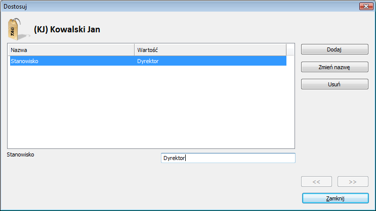 Po kliknięciu przycisku Dostosuj można wpisać i stworzyć nowe pole danych o nazwie Stanowisko.