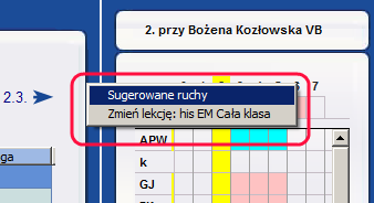 Jeśli zdecydujesz się zaakceptować tę sugestię, kliknij symbol małej strzałki na piątej godzinie lekcyjnej i wybierz "Sugerowane rozwiązania":