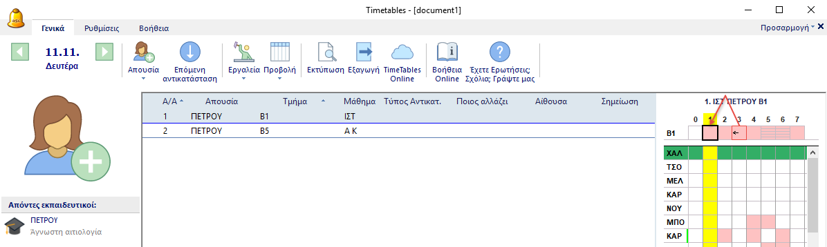 Μπορείτε να αγνοήσετε την πρόταση της εφαρμογής και να ορίσετε όποιον εκπαιδευτικό θέλετε για την αντικατάσταση της 2ης διδασκαλίας.