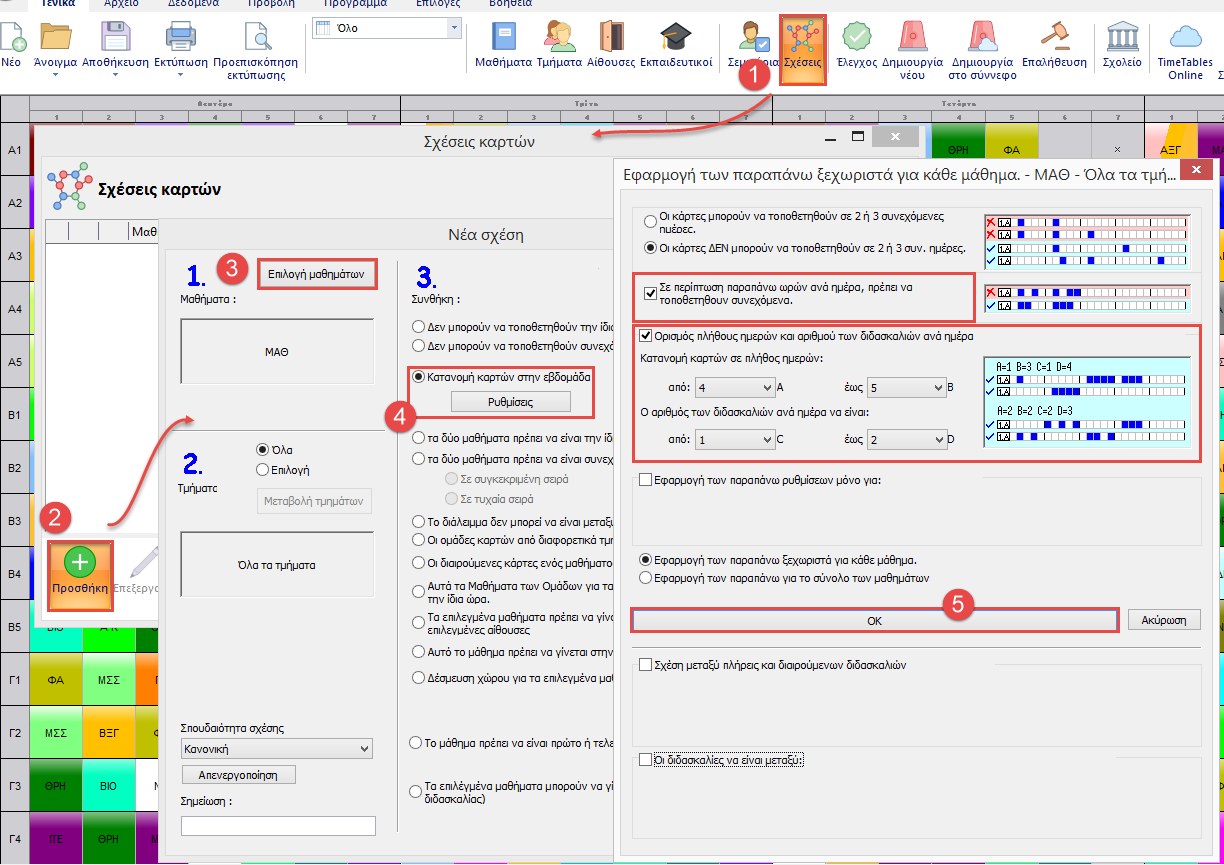 Εάν έχετε 6 διδασκαλίες Μαθηματικών κάθε μέρα της πενταήμερης εβδομάδας. Τότε θα υπάρχουν δύο περίοδοι Μαθηματικών κάποια μέρα. Εάν θέλετε οι δύο διδασκαλίες να τοποθετηθούν συνεχόμενα: