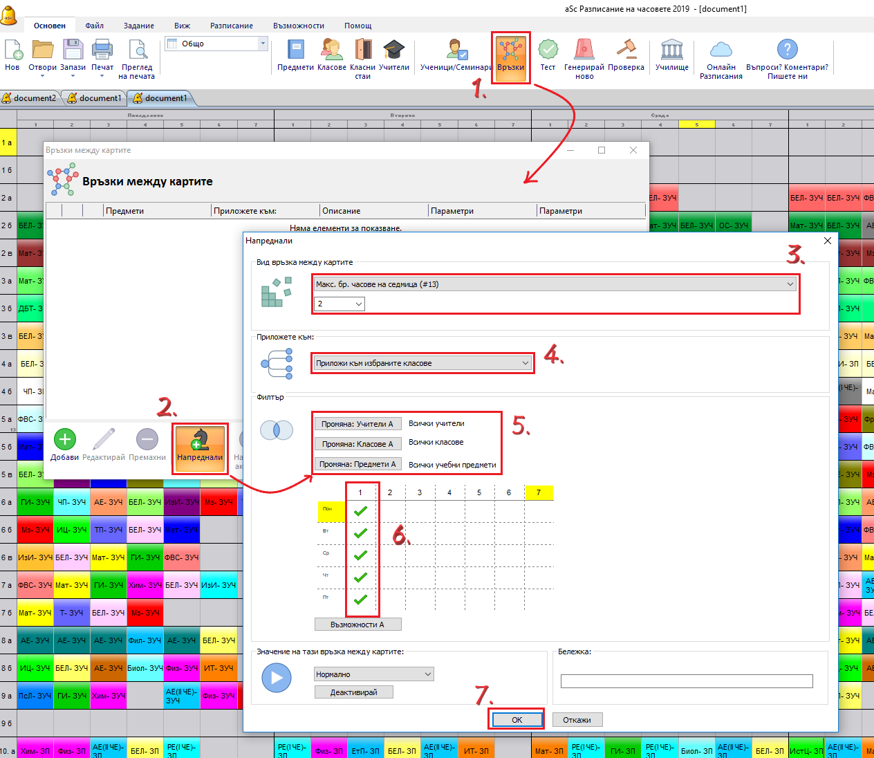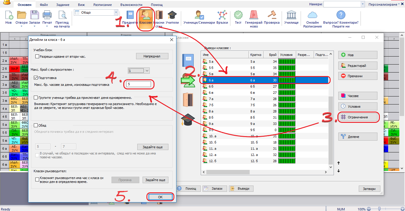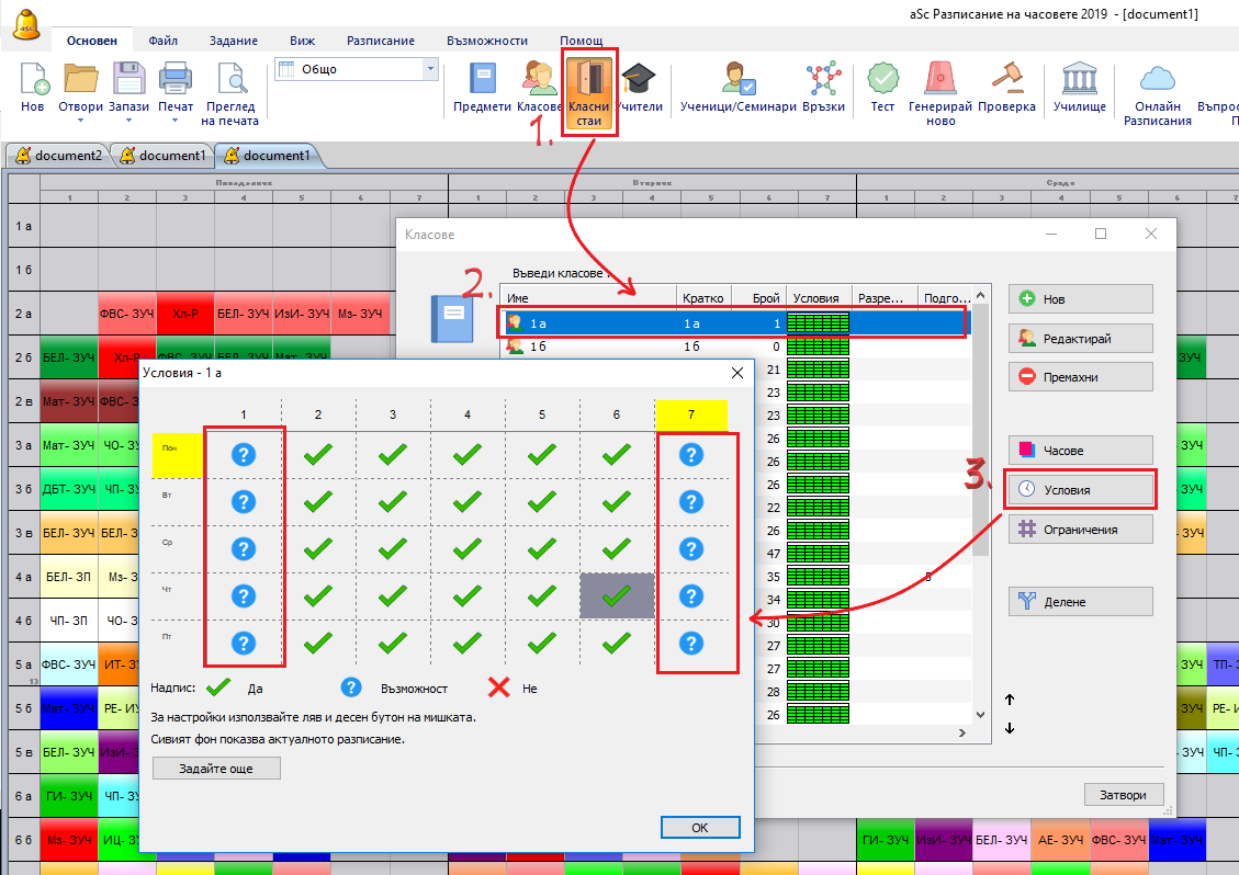 Ние сме обозначили, че всички класове могат да имат максимум 2 часа в маркирана позиция на седмица. Така няма да може да се случи един клас да има 3 нулеви часа.