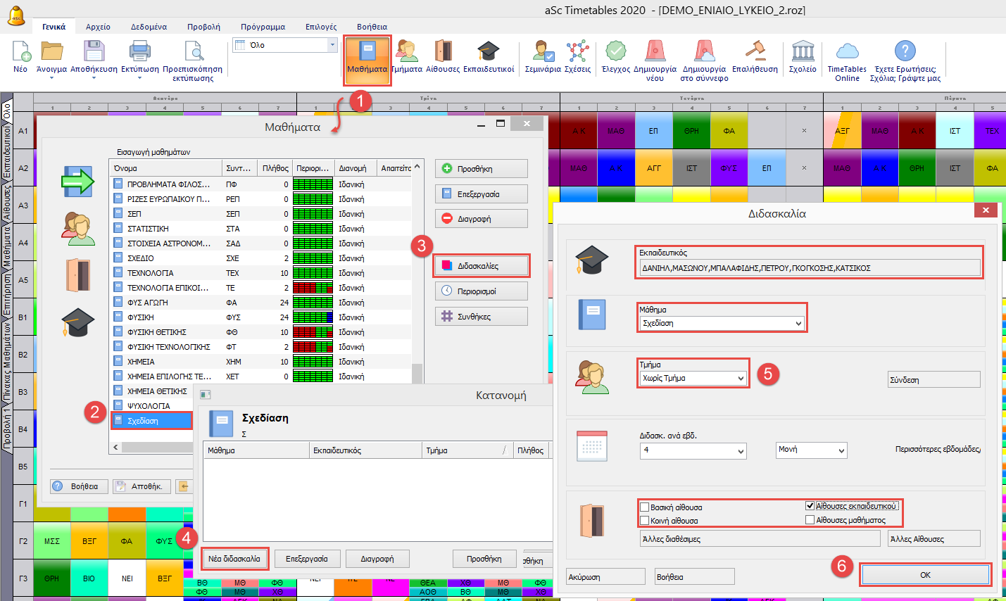 Η ώρα της σχεδίασης μπορεί να προστεθεί ως διδασκαλία χωρίς τμήμα. Εμφανίζονται μόνο στο πρόγραμμα των εκπαιδευτικών και είναι ανεξάρτητη από όλα τα τμήματα.
