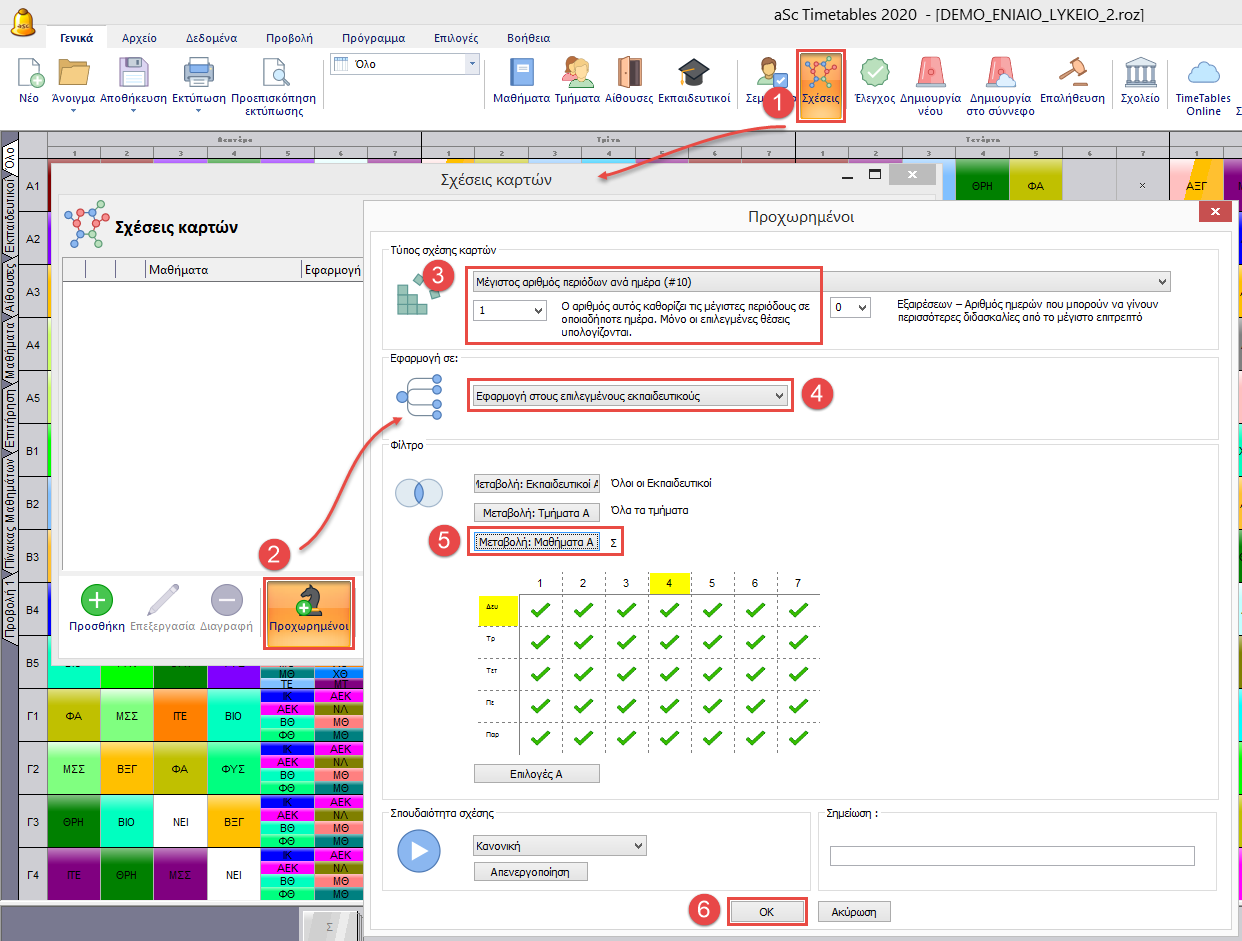 Χρησιμοποιώντας την παρακάτω σχέση καρτών προσδιορίστε ότι κάθε εκπαιδευτικός μπορεί δεν μπορεί να έχει παραπάνω από 1 ώρα σχεδίασης κάθε ημέρα.
