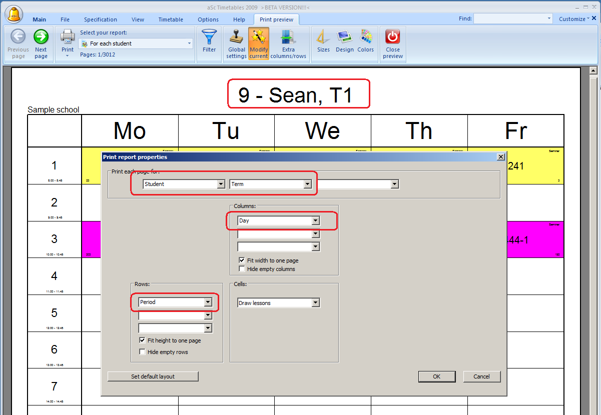 Now, whenever you will select in the main combobox that you want to print timetable for each student, this new modified layout will be used.
