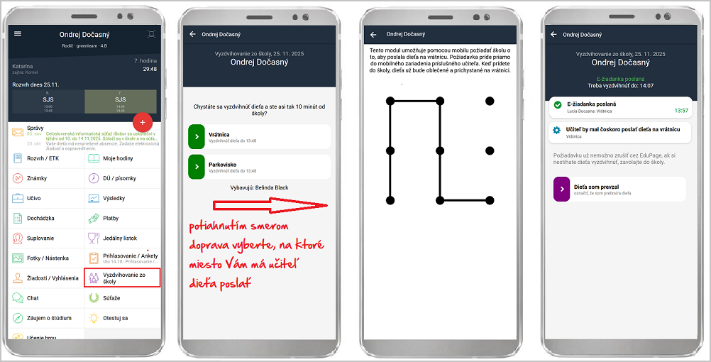 - Ak však z ľubovoľného dôvodu nikto z učiteľov v daný deň vyzdvihovanie pre Vaše dieťa ešte neaktivoval - musíte buď počkať alebo ísť po dieťa bez využitia oznámenia via EduPage a modul Vyzdvihovanie.