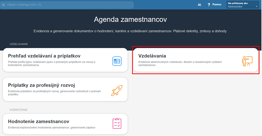 V ľavom menu zvoľte Dokumentácia/Agenda zamestnancov.