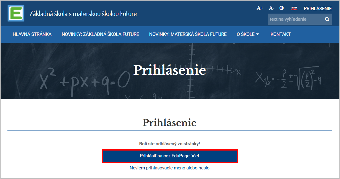 Kliknite na Prihlásiť sa cez EduPage účet.