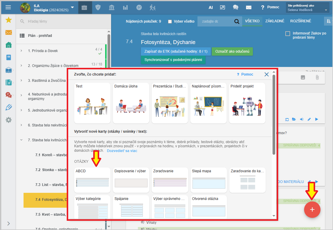 EduPage AI, e-learning, otázky v testoch, ABCD otázka